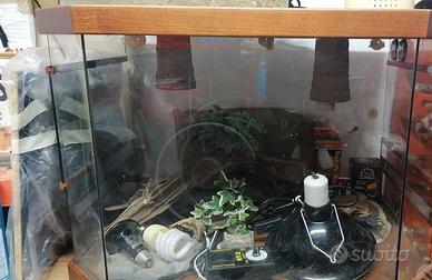 Non possiedo più animali (rettili) e cedo tutto impianto, completo di lampada riscaldante e termostato. materiale legno (colore ciliegio) e vetro Completo di accessori: lampade, ciotole cibo/acqua, termostato per riscaldatore, accessorio legno arredo.