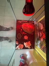 Completa di tappeto riscaldante, accessori e lampada UV rossa per rettili.