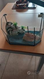 vendo teca per tartarughe completa di tutto pompa per muovere l'acqua riscaldatore acqua lampada uv isola galleggiante e sabbia le misure sono 41 cm la lunghezza e 22cm larghezza vendo tutto a 50 euro