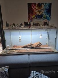 Vendo teca di 120x60x50 semi nuova con pogona vitticeps di 4 anni emmezzo più svariati accessori come lampada riscaldante, 2 portalampade in ceramica, tappeto riscaldante e plafoniera led giorno-notte che illumina molto bene lunga 120 cm.