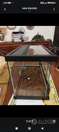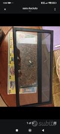 Teca in vetro e resina 40×20 per piccoli rettili, MAI usata perché non adatta al mio serpente. Il foro per il passaggio dei cavi è tappato con una rete metallica zincata e del silicone per acquari per evitare la fuga, ma si può rimuovere o semplicemente tagliare la rete. (serratura non inclusa) ritiro a Palermo. Teca, terrario, rettili