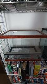 Vendo due teche per rettili in ottime condizioni con accessori in foto. Unico difetto piccola seccatura vetro teca marrone.