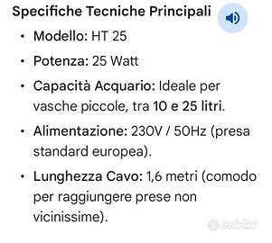 Capacità Acquario: Ideale per vasche piccole, tra 10 e 25 litri.