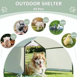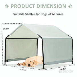 Il rifugio per animali Beimo fornisce protezione UV e pioggia per il tuo animale domestico dal tempo in qualsiasi luogo all'aperto. Il suo telaio in acciaio con diametro di 1" garantisce resistenza e stabilità, mentre il rivestimento in polvere premium lo protegge da corrosione, desquamazione e ruggine. La copertura in poliestere 420D è resistente e progettata per mantenere il tuo animale domestico fresco e protetto dai dannosi raggi UVA e UVB, mentre è abbastanza resistente da non rompersi facilmente dalla masticazione e dallo strappo. Il montaggio è facile e veloce con tutto ciò che è incluso nel kit e può essere installato in 15 minuti o meno. Sono inoltre previsti punte di terra per afferrare il baldacchino dell'animale domestico in posizione. Dimensioni prodotto : 119,99 x 118,01 x 97 cm; 8,86 kg, questa tenda per cani all'aperto è perfetta per fornire ombra e riparo per cani di taglia medio-piccola durante i caldi mesi estivi e riparo dalla pioggia.