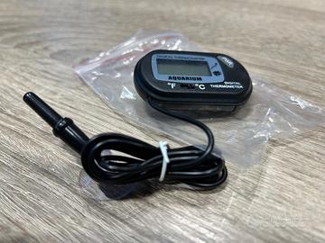 Termometro digitale per acquario LCD con sonda e sensore, resistente all'acqua si aggancia grazie alla ventosa. Ideale per controllare la temperatura in acquari, terrai e incubatrici per tartarughe. Alimentato da batteria di tipo LR44 non presente nella confezione. Articolo nuovo mai utilizzato.