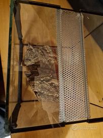 Vendo terrario in vetro 20x20x20 con griglia di areazione e apertura frontale. inclusi 2 pezzi di sughero.