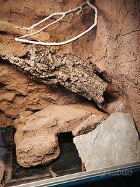 Vendo terrario allestito per ambiente desertico. Le pareti sono fatte in schiuma poliuretanica e polostirene rivestiti in argilla.