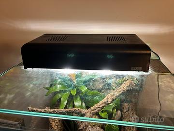 Vendo terrario in vetro di grandi dimensioni (60x60x80 cm) completo di mobile di supporto, allestimento interno e portalampade doppio Exo Terra incluso nel prezzo.