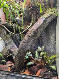 Vendo terrario bioattivo giganterra misure 40x40x60 con sfondo 3D, 2 lampade skylight led, piante vive, fondo attivo, impianto di nebulizzazione dell’acqua, e fogger acquistato da DREVIVARIUM. Terrario adatto a rettili e anfibi come raganelle, rane freccia, geco ecc 360€