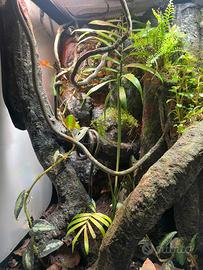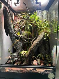 Il terrario viene ceduto con una coppia di raganelle dagli occhi rossi di circa 2 anni perfettamente in salute.