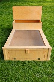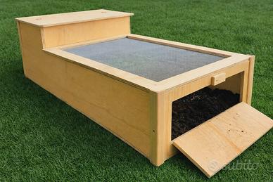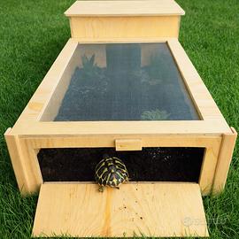 Elegante Terrario in legno fenolico di pino marino, con finestra frontale ad apertura a ribalta,adatto sia per interni che esterni e realizzato in modo artigianale.Nella parte superiore è dotato di pannello in rete per favorire l'aerazione all'interno. -Legname utilizzato; Fenolico di pino marino al naturale, molto resistente agli agenti atmosferici e all'umidità. -legname al naturale. -Pannello superiore in rete metallica. -Tettuccio apribile. -Lato frontale con finestra apribile, ribaltandola permetteremo alla nostra amica tartaruga di uscire e rientrare ogni volta che vorrà. MISURE DISPONIBILI: 80X40X20:Euro 69 95X45X28:Euro 85 122X60X30:Euro 119 POSSIBILITÀ DI AGGIUNGERE RUOTE PER FACILITARE LO SPOSTAMENTO. -IN BASE ALLA DISPONIBILITÀ BEVERINO O CIOTOLA IN OMAGGIO!!! PREZZO ESPOSTO INCLUSA SPEDIZIONE IN TUTTA ITALIA!! NOTA BENE LA RETE IN DOTAZIONE, È POSSIBILE SOSTITUIRLA CON RETE IN PVC VERDE,BASTA SPECIFICARLO NELLE NOTE AL MOMENTO DELL' ACQUISTO. LA TONALITÀ DEL LEGNO UTILIZZATO POTREBBE DIFFERENZIARSI RISPETTO A QUELLA DELLE FOTO, VISTO CHE TRATTASI DI LEGNO LASCIATO AL NATURALE. ADEGUATAMENTE IMBALLATO VIENE SPEDITO GIÀ MONTATO. E' POSSIBILE EFFETTUARE VARIAZIONI DI MISURA IN BASE ALLE PROPRIE ESIGENZE,PER QUALSIASI INFO NON ESITATE A CONTATTARMI.