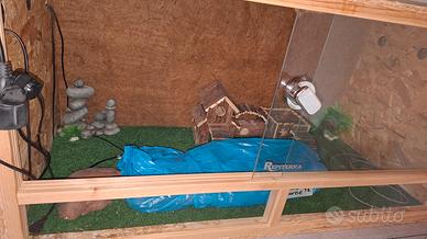 Vendo terrario 120x60x60 già completo di accessori . Maniglie a ventosa aggiunte da me ; un ricambio in più del fondo di erba finta . Era occupato da gechi leopardini .