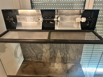 Vendesi terrario ExoTerra dimensioni 90x45x60, ottime condizioni, completo di plafoniera porta lampade e retina di copertura superiore. Insieme al terrario vengono fornite anche due lampade exo terra natural light (usate) e una lampada basking (praticamente nuova). Disponibili separatamente anche ciotole per acqua e mangime exo terra, tane di legno e sistema di irrigazione monsoon solo 1.