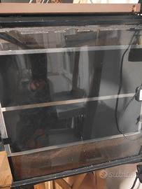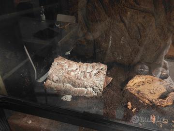 terrario exoterra 90 x 45 x 45 accessoriato con 2 grandi tronchi di sughero, 2 tappetini riscaldanti da 20 x e 40 w , ciotola per acqua e piccola ciotola per cibo + igrometro e 2 achatina achatina di quasi 6 anni pronte per la deposizione