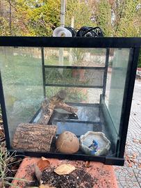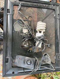 Terrario in ottime condizioni ideale per rettili di piccola taglia, col terrario vendo anche lampada riscaldante, luce uv, regola temperatura e due portalampada in ceramica