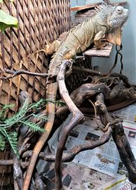 HA OSPITATO IGUANA VERDE DA 30 CM FINO A MT 1,30 CON RAMI ALL'INTERNO IN LEGNO DI VITE DECONTAMINATO PER RETTILE ED ACCESSORI0