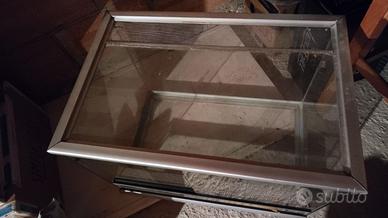 Vendo terrario in vetro buone condizioni (rotto solamente in un punto la striscia di vetro come da foto ove presente scotch, non pregiudica il funzionamento ), dimensioni 51x37x34, solo ritiro a mano