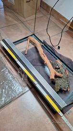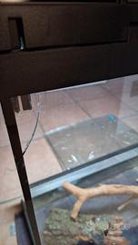 vendo per inutilizzo terrario con orientamento verticale con coperchio apribile; l60×l30×h60. la porzione davanti si apre tramtite due sportelli di vetro scorrevoli. il coperchio presenta alloggiamenti per 2 led. piccolo difetto su una faccia