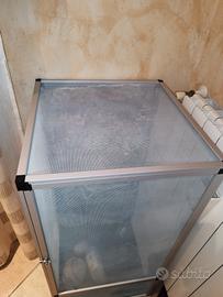 teca in rete metallica 50x50x100H cm per rettili e animali esotici, è stato anche realizzato a mano uno sfondo 3d removibile come vedete da foto, non può essere spedito quindi ritiro a mano a Nardò.