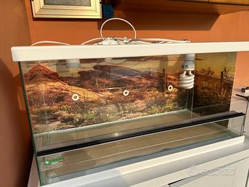 Vendo terrario Compreso di sfondo desertico 1 luce UVB 2 porta lampada in ceramica con fili annessi per accensione/spegnimento