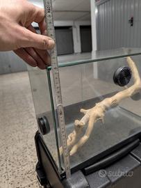 Vendo terrario/paludario in vetro - Dimensioni 41,5x20,5x30,5 cm. Perfetto per piccoli rettili, anfibi o per creare un microsistema acquatico e terrestre (paludario). Incluso nel prezzo il legno decorativo visibile in foto, già pronto per l'allestimento