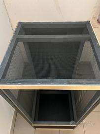 Terrario per camaleonti mai utilizzato in rete con struttura in legno