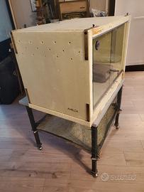 Vendo per inutilizzo terrario su due piani fatto da 2 moduli collegabili o indipendenti così da offrire climi differenti all'animale. Piano superiore coibentato, con vetri scorrevoli a serratura. Piano inferiore struttura ferro su ruote con rete. Usato per 20anni con boa costrictor oltre i 10kg. Cedo anche un paio di cavi. riscaldanti, pinza e lampada.