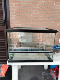 Il terrario non presenta crepe, é ideale per rettili, gechi leopardiani, rane, lumache africane. Ha inserti per termostato piu le prese d'aria. Si cede sanificato.