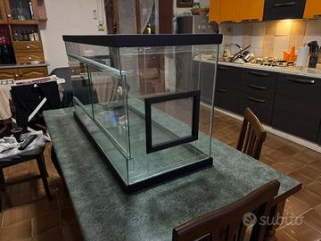 Vendo splendido terrario per rettili, completamente in vetro senza alcun graffio o segno d’usura è nuovissimo, ha 1 mese di vita, il terrario ha a disposizione 3 buchi: sonda, lampada riscaldante, lampada uv, teca perfetta per qualsiasi tipo di rettile il terrario è: 1mt lunghezza 40cm larghezza 55cm altezza 42cm profondità contattare solo se siete realmente interessati no perdi tempo prezzo poco trattabile.