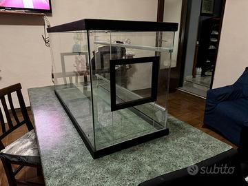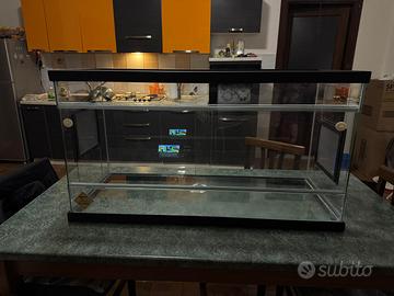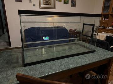 Vendo splendido terrario per rettili, completamente in vetro senza alcun graffio o segno d’usura è nuovissimo, ha 1 mese di vita, il terrario ha a disposizione 3 buchi: sonda, lampada riscaldante, lampada uv, teca perfetta per qualsiasi tipo di rettile il terrario è: 1mt lunghezza 40cm larghezza 55cm altezza 42cm profondità contattare solo se siete realmente interessati no perdi tempo prezzo poco trattabile.