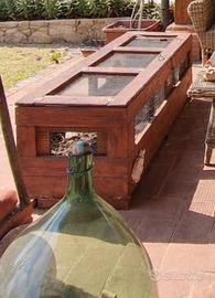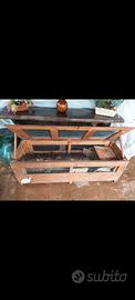 terrario per tartarughe di terra costruito da un falegname tutto in legno massello con rete in metallo. Misura 150cm di lunghezza, 50cm di larghezza e 50cm di altezza. In buono stato, necessita solamente di una rinfrescata alla verniciatura. Impossibile da spedire dato il peso e le dimensioni. Non è compresa la casetta interna e le tartarughe!!