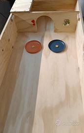 ll terrario è interamente in legno fenolico (adatto contro umidità )ed include casetta per tartarughe dotata di tetto apribile , vaschetta acqua e rete di protezione.