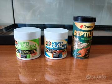 - 2 scatoli di integratori di calcio e vitamina D, una confezione di Stick per rettili vegetariani.