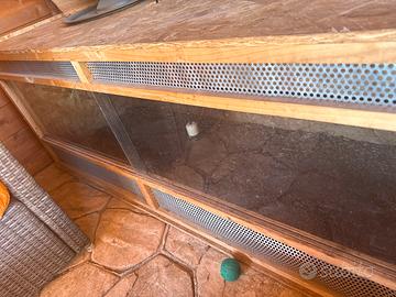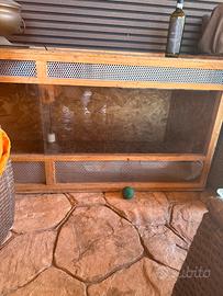 Vendo terrario adatto per rettili e tartarughe sulcata. Predisposizione per luci gia fatta. Unico difetto retina sottostante leggermente piegata. Misure 1,60 lunghezza 60 larghezza 60cm altezza