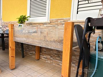 Terrario in plexiglass con gambe in legno artigianali su ruote