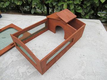 Terrario per tartarughe di terra e altri animali. Misura cm 60x40x20h. Il terrario è costituito da legname fenolico TRATTATO con protettivi per legno professionali, atossici e inodori: 2 mani di impregnante all'acqua + Flatting all'acqua a finitura brillante. Il tetto della casetta è apribile per ispezione e pulizia; il cortile è dotato di coperchio estraibile e può essere con fondo libero oppure con fondo rivestito da rete. Spedizione con corriere BRT.