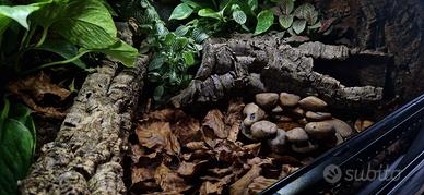 substrato bioattivo avviato da 2 mesi con collemboli tropicali e isopodi per non dover mai pulire il fondo in quanto autopulente.