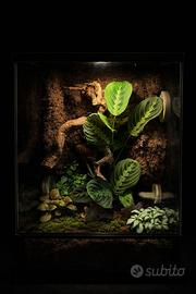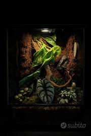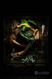 Terrario tropicale artigianale (dimensioni 30x30x45 cm) ✅ Caratteristiche principali: • Struttura solida e precisa, con bocchette d’aerazione sfalsate per garantire ottima circolazione dell’aria (fredda e calda). • Mangiatoia estraibile dall’esterno, pratica e igienica, pensata anche per eventuali animali esotici (gechi, isopodi, piccoli anfibi, ecc.). • Allestimento completo con pothos, fittonie e piante tropicali selezionate per garantire equilibrio e stabilità ambientale. • Design elegante e naturale, perfetto anche come elemento d’arredo.