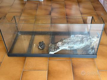 Terrario usato poco come nuovo. Pagato 200 euro 3 anni fa. Usato solo qualche mese e poi riposto in ripostiglio. Nessun difetto, vetri senza lesioni o graffi completo di termometro, riscaldatore dell’acqua, pompa riciclo l e 2 buste di ovatta sintetica per filtri. Misure 80 x 35 x 37 cm. Solo ritiro a mano.