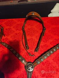 Vendo causa inutilizzo testiera con stelle, redini e pettorale con conci in argento pezzi unici misura full.