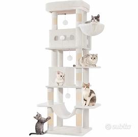 Tiragraffi 170 cm grande, torre per gatti per gatto Maine Coon e gatti di taglia grande, albero tiragraffi multilivello con grande piattaforma seduta, tappetino lavabile, mobili per gatti con 2 nicchie, 8 alberi tiragraffi
