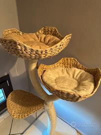 Tutte le caratteristiche del tiragraffi Cat´s Flower: Prezzo di listino 105 euro. ideale anche per gatti di taglia grande e pesanti con robuste colonne in metallo e una larga e stabile base d'appoggio: offrono elevata solidità e stabilità con 2 cuccette realizzate in foglie di giacinto d'acqua intrecciato con cuscini removibili: rappresentano delle comode e naturali piattaforme per sonnecchiare e osservare in territorio con cuscini double-face con lati di colore diverso: potrete cambiare lo stile del tiragraffi girando semplicemente i cuscini in foglie di giacinto d'acqua intrecciate e sisal naturale: funzionalità ed estetica attraverso materiali naturali di ottima qualità sufficienti superfici per rifarsi le unghie: grazie al tappetino tiragraffi della base d'appoggio e alle colonne in sisal estremamente stabile con prima piattaforma a forma di fiore per aiutare Micio nella salita con 3 giochini attaccati a cordicelle di gomma colore: peluche: crema cuccette in foglie di giacinto d'acqua: naturale cuscini double-face: crema / beige max. ingombro: H 130 x L 64 x P 55 cm max. ingombro (con base d'appoggio orientata in diagonale): H 130 x L 74 x P 55 cm base d'appoggio: L 55 x P 55 x H 5,5 cm piattaforma a forma di fiore / ausilio per la salita: L 39 x P 31 x H 12 cm 2 cuccette a forma di fiore con morbidi bordi: misure complessive: Ø 42 x H 15 cm superfici d'appoggio: Ø 40 cm misura dei cuscini bicolore imbottiti: Ø 40 cm (ciascuno) cuscini double-face lavabili a 30°C materiale: 100% poliestere 3 colonne in metallo rivestite di peluche e sisal naturale: 1 x Ø ca. 8,5 x L 60 cm 1 x Ø ca. 6 x L 32 cm 1 x Ø ca. 6 x L 50 cm