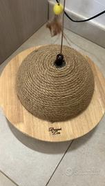 Piccolo tiragraffi con base in legno, fatto da un artigiano interamente a mano! Il mio gatto purtroppo non lo appressa, infatti è rimasto nuovo, a forme di pianeta con piume per attirarlo! Perfettamente nuovo!