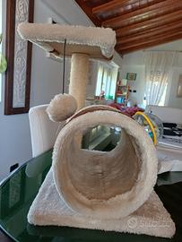 Il Tiragraffi Tunnel ha un'asta rivestita in sisal che permette a qualsiasi gatto di allungarsi e graffiarsi; l'ampia base fornisce stabilità. Può saltare su e riposare sullo scaffale più alto. Il cilindro offre uno spazio accogliente per giocare e riposare. Design semplice ma funzionale per il tuo gatto.