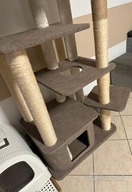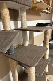 Grandissimo tiragraffi tipo casa/castello...molto funzionale e aprezzato, vendo x cambio arreddamento....gia' smontato e facile da rimontare....piccoli difetti da usura ma ancora in ottimi stato..pagato piu di 300€ vendo a meno della meta', consiglio ritiro a domicilio xk molto pesante, materiale ( legno, tessuto, corda) colore grigio