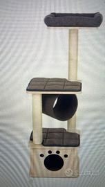 Tiragraffi Iona con rullo gioco per gatti, ideale da mettere negli angoli, grande casetta in legno & lettino, colonne in sisal naturale, rivestimento in tessuto da arredo, mis.: H 116. Usato ma ben tenuto