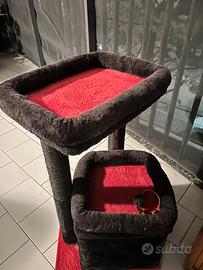 Tiragraffi Multi-livello torre per gatti con rivestimento in sisal accogliente cuccia e grande trespolo da interno. Rosso e nero