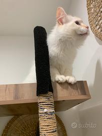 Vendo tiragraffi acquistato a Gennaio a 170 euro. È come nuovo perché il gatto praticamente non lo usa, perché da bravo figlio unico viziato usa altri tiragraffi, (qui faceva il modello). Lo vendo a 100 euro gia montato (ci ho messo 3/4 ore per montarlo, quindi risparmiereste del tempo. In più gli ho montato un tubo con filo tiragraffi, anche lì ci ho perso 2/3 ore per avvolgere il tutto e ve lo regalo, se no si butta.