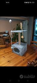 Tiragraffi per gatti in ottime condizioni, marca Zolux, composto da cubo con apertura davanti e ripiano superiore in moquette. Misure d ingombro: altezza 56 cm, lunghezza 30 cm, profondità 30 cm. In aggiunta altro gioco per gatti visibile nell' ultima foto.