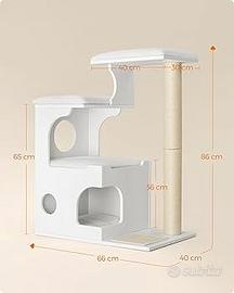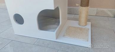 Albero tiragraffi con 4 posti ricoperti da cuscini staccabili e lavabili più tappeto tiragraffi e palo che però necessita di sostituzione o rifacimento (vds foto). La struttura ed i cuscini sono in ottimo stato conservativo. Le misure sono visualizzabili nell'immagine allegata.